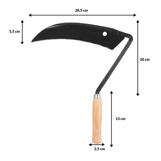 ✅ Wielofunkcyjność: Sierp może być używany w różnych pracach rolniczych i ogrodniczych. Służy do zbioru zbóż, traw, ziół czy kwiatów, a także do przycinania gałęzi, chwastów czy innych roślinnych elementów.