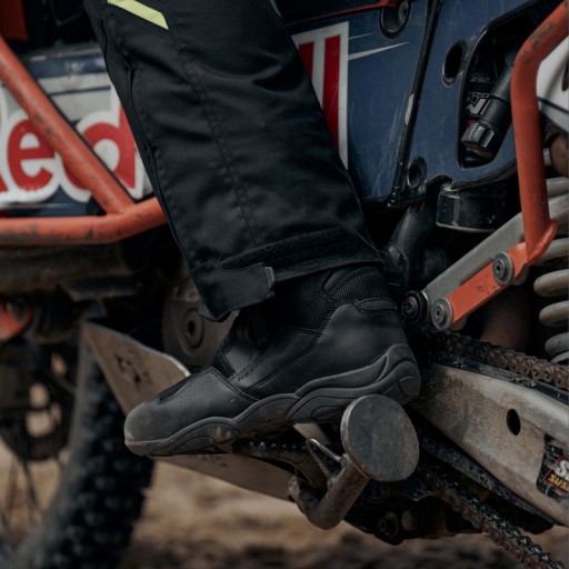 Buty motocyklowe Rebelhorn Compass wyposażono w twarde osłony narażonych miejsc oraz usztywnienia i wzmocnienia. Długie zamki ułatwiają zakładanie i zdejmowanie butów. Rebelhorn Compass mają piankową wkładkę, która absorbuje drgania i daje duże poczucie wygody podczas chodzenia.