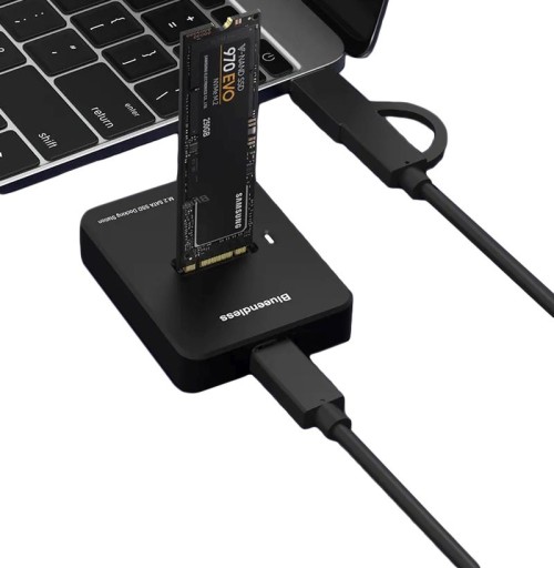 - Stacja dokująca pracuje z dyskami M.2 interfejsem M.2 SATA i M.2 NVMe PCIe