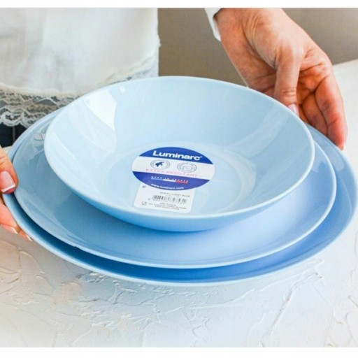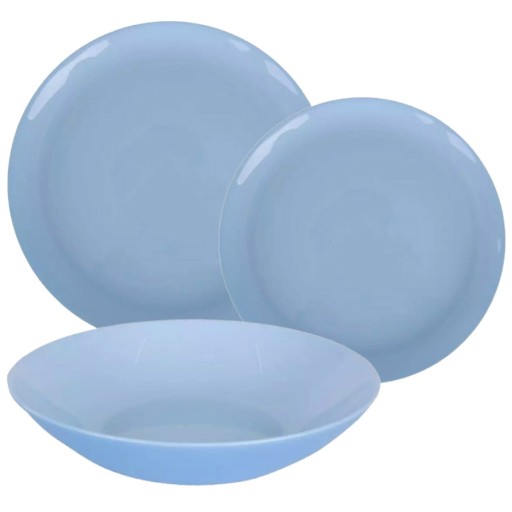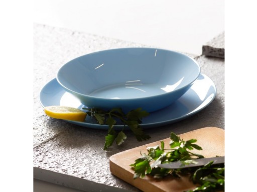 - Serwis obiadowy z serii Diwali firmy Luminarc w niebieskiej wersji - Blue. Diwali Luminarc to seria gładkich naczyń bez zdobień, z tzw. bezbrzegową linią talerza - daje to więcej przestrzeni na ekspozycję dania. Taki design wkomponuje się w wiele stylizacji, dodając im charakteru.