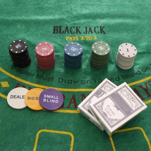 - 200 żetonów (z różnymi nominałami 5,10,20,50,100)