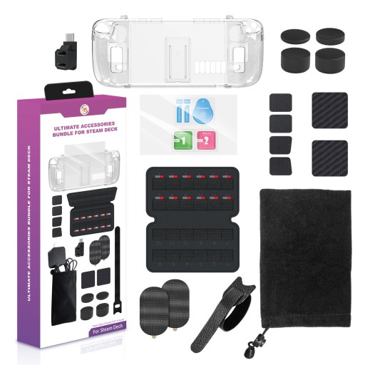 -Ten zestaw 19 w 1 został specjalnie zaprojektowany do Steam Deck i zawiera niezbędne akcesoria ochronne do konsoli do gier.