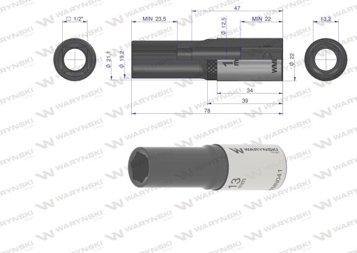 Шестигранная головка 1/2 длиной 13 мм Waryński