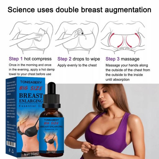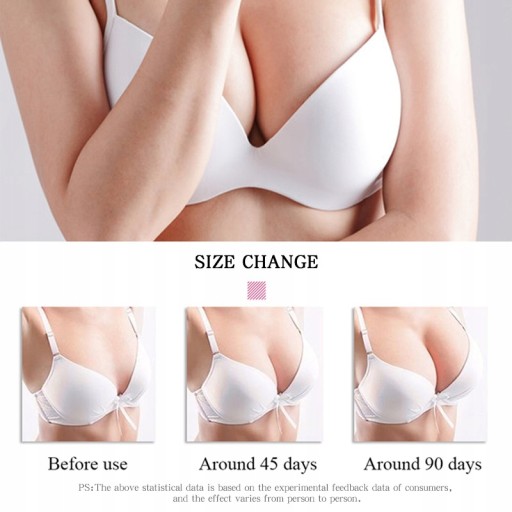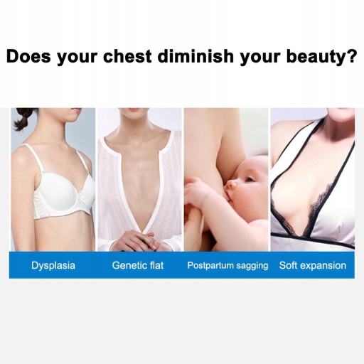 "Opis produktu:Jest to wyjątkowy krem, który wchłania się bardzo szybko. Przenikając głęboko w piersi daje szybkie rezultaty, ponieważ stosuje się bezpośrednio do tkanek docelowych. Wynik końcowy jest widoczny w ten sposób, że ujędrnia i wzmacnia piersi. Krem pomaga pomóc na obwisłe piersi poprzez wzmocnienie i podniesienie tkanek. Krem przyspiesza aktywację komórek całej piersi, podnosi piersi w krótkim okresie. Ponadto, składniki kremu mogą skutecznie zniwelować rozluźnienie tkanek, pomagają wzmocnić i podnieść biust w krótkim czasie, i wtedy Twoja linia ciała jest jeszcze bardziej atrakcyjna :)Uwaga: Data ważności wynosi 3 lata od daty produkcji (data produkcji podana na produkcie).Główne składniki: Wyciąg z Kigeline, zielonej papai i Pueraria Mirifica.Prawidłowe techniki masażu:Krok 1: krem masujesz dookoła piersi, w ten sposób, aby unikać kontaktu z sutkiem.Krok 2: lekko się schylić, położyć obie ręce na piersi i popychać w górę 10 razy.Krok 3: od pachy do środka popychać 10 razy.Porady stosowania:W pierwszym tygodniu stosowania, należy stosować masaż dwa razy dziennie - rano i wieczorem.Krem jest bardziej efektywny w użyciu po kąpieli.Gdy biust staje się pełniejszy, pamiętaj, aby nosić biustonosze odpowiednio dobrane :)Uwaga: Nie nadaje się dla kobiet w ciąży."