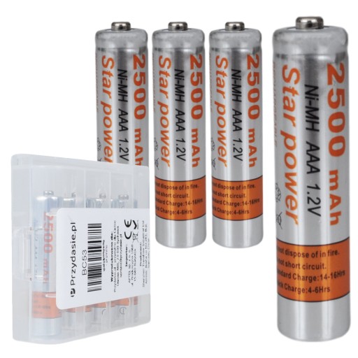 Komplet akumulatorków AAA (R3) o pojemności 2500mAh każdy - zwiększona pojemność. brak efektu pamięci. Idealne rozwiązanie jeśli Twoje urządzenie wyłącza się lub działa krótko.