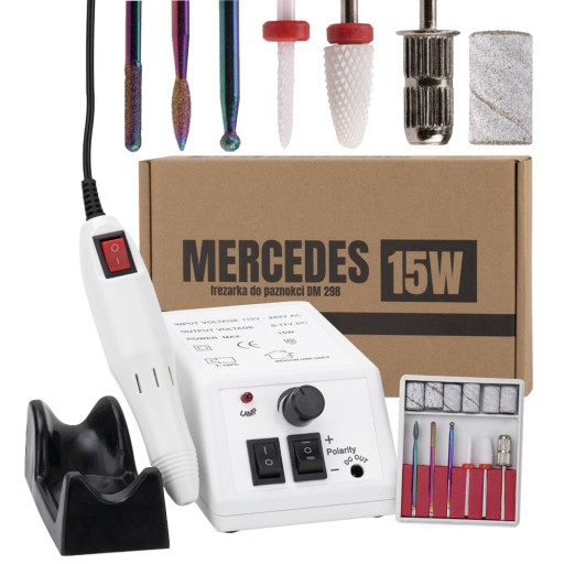 - Frezarka do manicure 15W z kompletem frezów Mercedes DM298 biała white