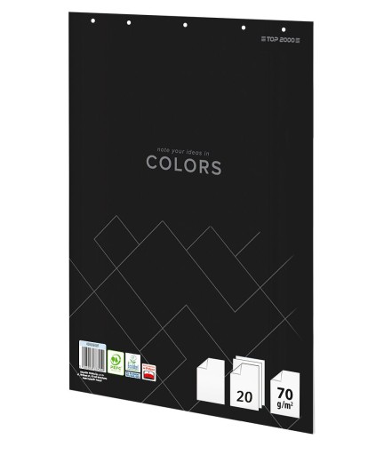 Bloki do flipcharta są niezastąpione na każdym spotkaniu czy prezentacji. Dzięki nim możesz szybko zapisać pojawiające się myśli podczas burzy mózgów. Na flipcharcie w szybki i łatwy sposób zwizualizujesz grupie słuchaczy każdy temat. Flipcharty Colors doskonale nadadzą się również do używania w szołach i na uczelniach - szczególnie na tych przedmiotach, na których dużo się szkicuje i rysuje. Klasyczna, czarna okładka z minimalistycznym wzorem jest na tyle uniwersalna, ze sprawdzi się w każdym miejscu.