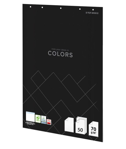 Bloki do flipcharta są niezastąpione na każdym spotkaniu czy prezentacji. Dzięki nim możesz szybko zapisać pojawiające się myśli podczas burzy mózgów. Na flipcharcie w szybki i łatwy sposób zwizualizujesz grupie słuchaczy każdy temat. Flipcharty Colors doskonale nadadzą się również do używania w szołach i na uczelniach - szczególnie na tych przedmiotach, na których dużo się szkicuje i rysuje. Klasyczna, czarna okładka z minimalistycznym wzorem jest na tyle uniwersalna, ze sprawdzi się w każdym miejscu.