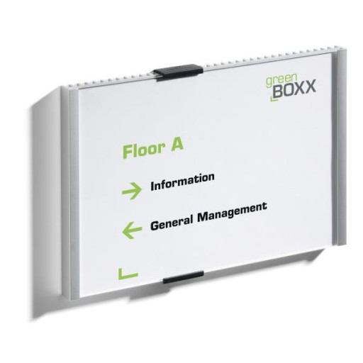 Wskazówki do produktuTabliczka informacyjna Info Sign wykonana jest z aluminium (tył) oraz akrylu (przednia osłona). Tabliczka może być zamontowana na ścianie obok drzwi lub bezpośrednio na drzwiach. Do montażu na ścianie służą metalowe wkręty. Z kolei, do monażu na drzwiach- dwustronny pasek samoprzylepny. Cały zestaw montażowy (śruby i pasek samoprzylepny) oraz szablon do wiercenia otworów w ścianie znajduje się w komplecie z tabliczką. Może służyć do opisu i oznaczenia pomieszczeń biurowych, sal konferencyjnych lub innych miejsc użyteczności publicznej. Durable jest jednym z wiodących niemieckich producentów markowych produktów do prezentacji oraz organizacji środowiska biurowego. Przyjazny dla środowiska zgodnie z ISO 14021.