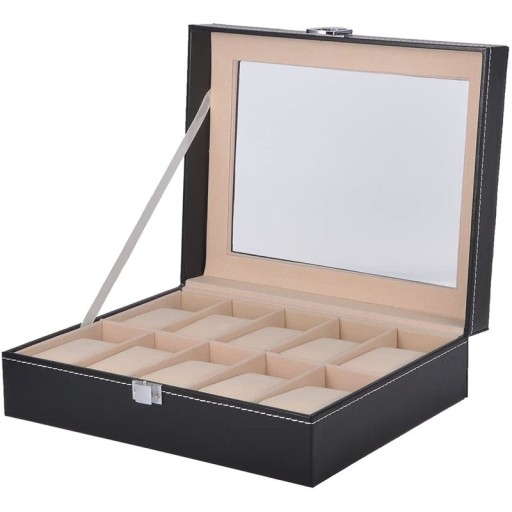 ➡️ Przemyślany design - 12 komór na zegarki, jasne zamszowe wykończenie wewnątrz i przezroczyste okienko na wieczku.