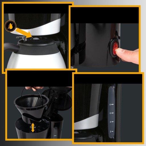 Clatronic KA 3327 to urządzenie dzięki któremu przygotujesz pyszną, świeżo parzoną, sypaną kawę metodą przelewową. Wystarczy wsypać zmieloną kawę, wlać odpowiednią ilość wody i wcisnąć guzik, a aromatycznym naparem możemy cieszyć się już po kilku minutach. W zestawie znajdują się termo-dzbanek o pojemności 1 litra dzięki któremu kawa pozostanie gorąca przez długi czas.