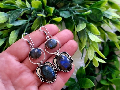 Zrobiono z indyjskiego srebra(ze stopu srebra i miedzi).Centrum oprawiony naturalny Labradoryt Ognisty. Ręczne wykonanie indyjskiego jubilera. Nowy bez metki.