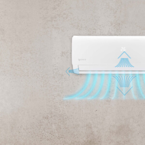 Klimatyzator poprzez szeroki zakres strumienia powietrza nawiewanego wydajnie rozprowadza powietrze w pomieszczeniu, zapewniając skuteczne chłodzenie lub grzanie.