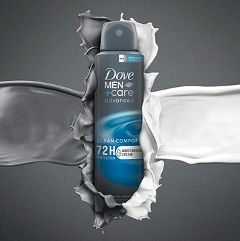 Dzięki zawartości aż 1/4 kremu nawilżającego antyperspirant Dove Men+Care Advanced Clean Comfort nie podrażnia skóry i przynosi jej ukojenie. Świeży, męski zapach zapewnia poczucie komfortu nawet do 72 godzin.