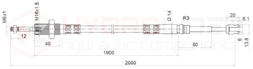 Końcówka linki od strony rozdzielacza: Cięgno z gwintem M6x1 oraz korpus gwintowany M16x1,5.
