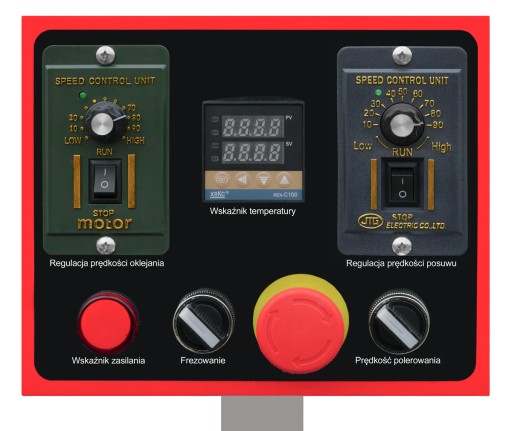 - Rolki pobierające okleinę załączają się w momencie osiągnięcia odpowiedniej temperatury topnienia kleju.