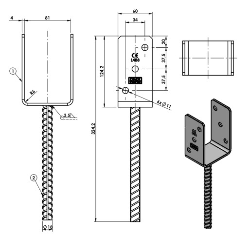 Ułatwia montaż elementów drewnianych z betonem, zapewnia odpowiednią dylatację drewna od podłoża. Przeznaczenie do architektury ogrodowej. Wyrób niekonstrukcyjny