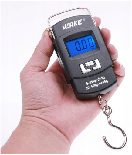 Waga hakowa posiada zakres ważenia do 50 kg z dokładnością 5 g. Urządzenie posiadaduży i wyraźny wyświetlacz LCD z podświetleniem.