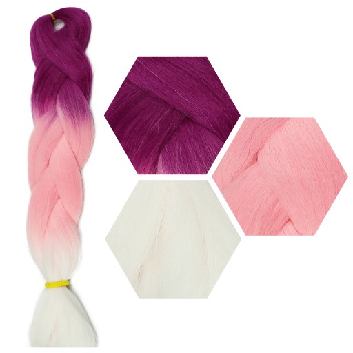 Włosy syntetyczne w przepięknym wariancie kolorystycznym - fioletowo-różowo-ecru. Wykonane z gładkiego i przyjemnego w dotyku henlonu.