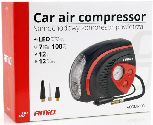 - W zestawie znajdują się aż 3 różne końcówki, które pozwalają na szerokie zastosowanie kompresora w domu, warsztacie, ogrodzie i na campingu!