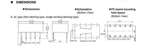 Grafiki prezentuje wymiary oraz wyprowadzenia przekaźnika.