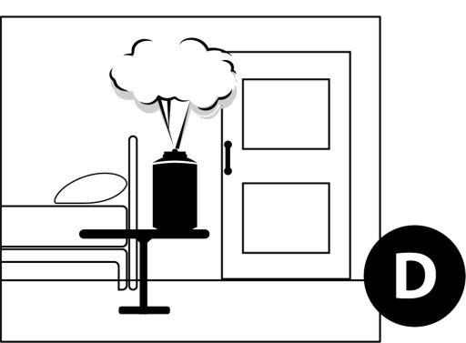 4️⃣ Pozostawić opróżniający się pojemnik, opuścić i zamknąć pomieszczenie na 1 godz. Czas aerozolowania pomieszczenia o kubaturze 30 m3 wynosi ok. 8 sekund.