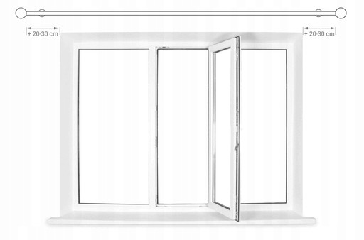 Aby dobrać prawidłowy rozmiar karnisza zmierz szerokość wnęki okiennej i dodaj 40-60 cm (po 20-30 cm na każdą stronę). Dzięki temu firanka lub zasłona będzie nachodzić na ścianę, tworząc dopełnienie wystroju wnętrza. Wsporniki powinny być zamontowane od wnęki okna o około 15 cm. Podany w aukcji rozmiar karnisza jest długością samej rurki, należy dodać do niej długość zakończeń, które przedłużają karnisz o około 1-2 cm.
