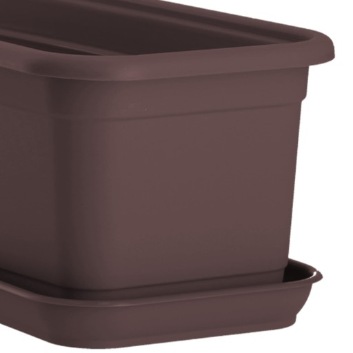 Doniczka z podstawką Evron to funkcjonalne, trwałe rozwiązanie, idealne nie tylko na balkony, ale także tarasy czy parapety. Dzięki klasycznej, prostokątnej formie zdołasz umieścić je nawet w pozornie problematycznym miejscu.