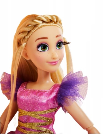 Hasbro Disney Księżniczki Stylowa Lalka Roszpunka F1247 - Urocza lalka Roszpunka ma przepiękne długie blond włosy i ubrana jest w elegancką, stylową różową suknię balową. Piękną kreację wyróżniają złote dodatki oraz brokatowy gorsecik. Całość stylizacji uzupełniają dodatki takie jak kuferkowa torebeczka, bransoletka oraz buciki.