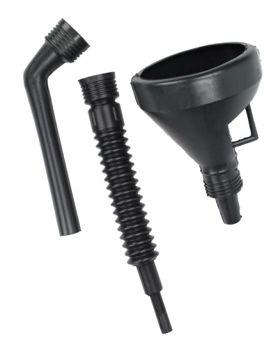 Trzyczęściowy lejek do paliwa, oleju oraz innych płynów eksploatacyjnych wykonany z odpornego polipropylenu. Wyposażony jest w sitko i dwie wymienne końcówki: jedną elastyczną i drugą sztywną, wygiętą pod kątem 50°, ułatwiające nalewanie płynów w zależności od potrzeb. Idealnie sprawdzi się w garażu, warsztacie, czy serwisie motoryzacyjnym.