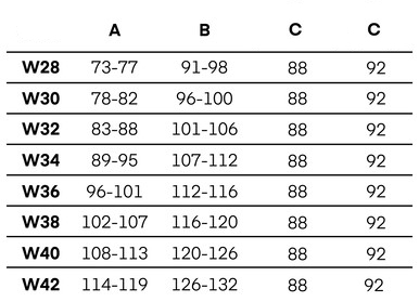 C: Wewnętrzna długość nogawki - mierzymy nogę od kroku do kostki.