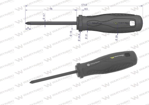 Wkrętak PH1. 75 mm. stal SVCM. Waryński