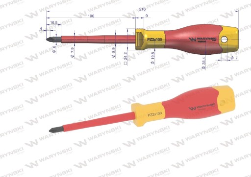 Wkrętak PH2 100 mm izolowany VDE stal S2, Waryński