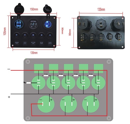 ПАНЕЛЬ РАСПРЕДЕЛИТЕЛЬНОЙ ПЛАТЫ 12 В 24 В USB ВЫКЛЮЧАТЕЛИ ПРИкуривателя ВОЛЬТМЕТР ПРЕДОХРАНИТЕЛИ