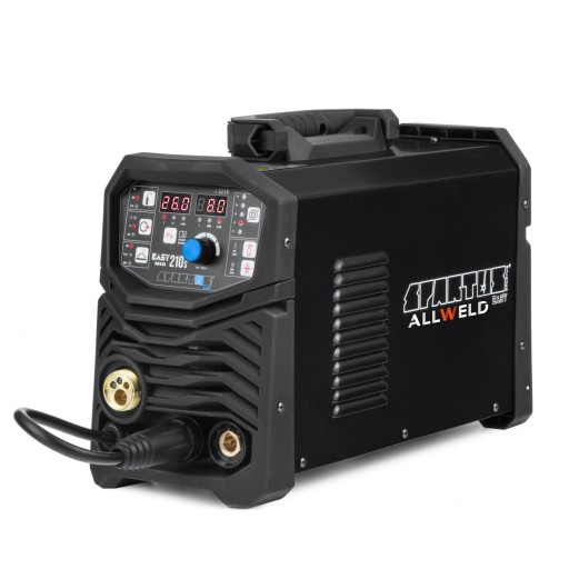 SPARTUS EASYMIG 210S to spawarka 3w1 do spawania metodami MIG/MAG, MMA i TIG DC (LIFT). Urządzenie pozwala na spawanie prądem maksymalnym 200A, zapewniając doskonałej jakości spoinę. Spawarka, dzięki regulowanej indukcyjności pozwala na ustawienie szerokości i głębokości wtopu, a także pozwala na spawanie bez odprysków zarówno cienkich blach, jak i grubych profili oraz prowadzenie procesu lutospawania CuSi, dzięki któremu można swobodnie łączyć blachy ocynkowane, które często stosowane są w karoseriach samochodowych. Spawarka daje nam możliwość pracy na programach synergicznych z wykorzystaniem drutów od 0,6 do 1,0mm. Dodatkowym atutem półautomatu jest opcja ręcznej korekty ustawień synergicznych.