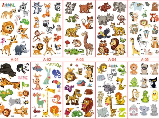 TATUAŻE ZMYWALNE 10 ARKUSZY - RÓŻNE WZORY DO WYBORU.