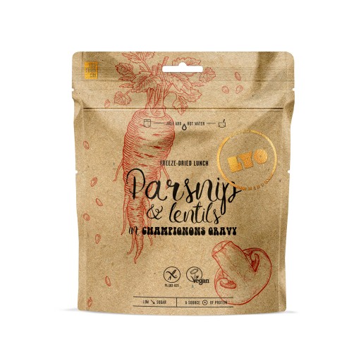 Sycący, a przy tym lekkostrawny. Subtelny, a zarazem pełen smaku i aromatu. Bez glutenu, bez laktozy. Gotowy w 10 minut. Pasternak i Soczewica w Sosie Pieczarkowym to wysokiej jakości posiłek, który doceni każdy zabiegany entuzjasta zdrowego żywienia.