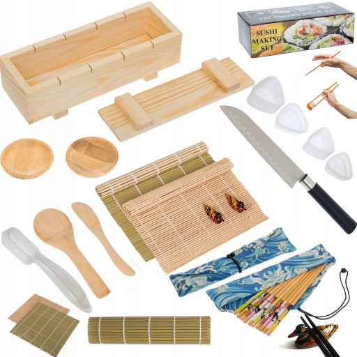 ✅Zestaw do robienia sushi - drewniana prostokątna prasa do sushi wraz z akcesoriami