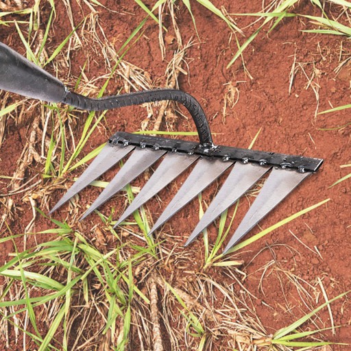 [Spawane ręcznie]: narzędzie ogrodowe wykonane jest z wytrzymałego materiału ze stali węglowej, spawania ręcznego, stalowych zębów, ostrości, odporności na rdzę i trwałości.