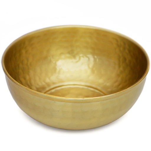 Miseczka z litego aluminium platerowanego mosiądzem, kuta rzemieślniczo. Tradycyjnie używana w łaźniach do czerpania wody lub przetrzymywania akcesoriów kąpielowych. Konserwacja ciepłą wodą z mydłem. Wycierać delikatną tkaniną do uzyskania połysku.