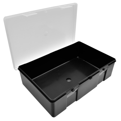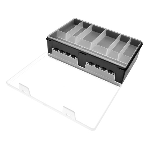 Solidnie wykonane, zaprojektowane z myślą o miłośnikach łowienia - pudełko firmy Anplast z praktycznym wyciąganym wkładem organizera. Wkład jest tak usytuowany tak, że pudełko ma 2 poziomy - górny organizer i wolna przestrzeń pod organizerem.