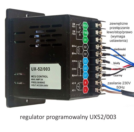 - po wyjęciu z opakowania regulator gotów do działania w podstawowym zakresie: regulacja płynna prędkości, przełączane kierunki, stop