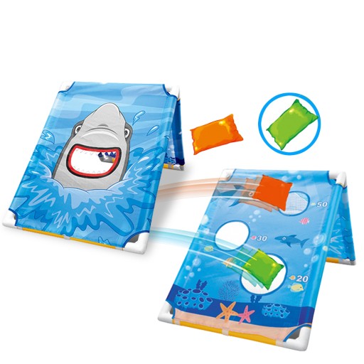 Przedstawiamy nasz zestaw plansz z workami z piaskiem, idealny dla dzieci, które uwielbiają aktywną i zabawną grę! Ta gra polega na wrzucaniu worków z piaskiem do buzi rekina na planszy.