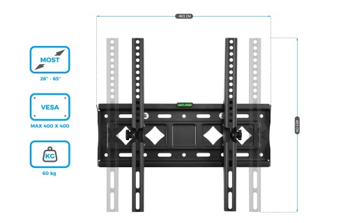 - Uchwyt dla telewizorów o przekątnej ekranu: do 65"