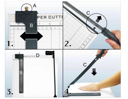 - Gilotyna tnie równo, można dzięki temu uzyskać proste krawędzi cięcia papieru, jak i dla profesjonalnych i amatorskich zastosowań jest idealna.