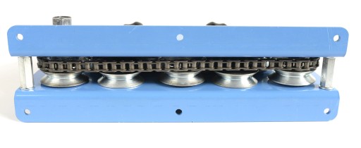 Dziewięć rolek łożyskowanych. 3 rolki w dolnym rzędzie połączone łańcuchem są napędzane.