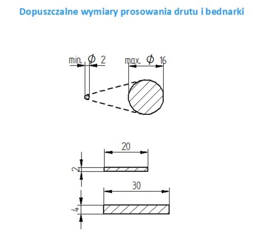 Przed wprowadzeniem drutu do prościarki należy wyprostować jego początek na długości około 50cm.