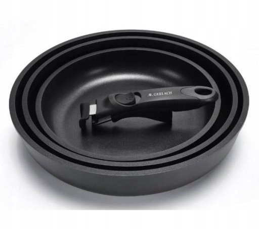 Zestaw patelni Gerlach Smart 4 elementy nr kat. 1234203 W zestawie: patelnia 20 cm, patelnia 24 cm, patelnia 28 cm, uchwyt Możliwość czyszczenia w zmywarce: tak Możliwość używania na kuchenkach indukcyjnych: tak Powłoka wewnętrzna: ceramiczna Powłoka zewnętrzna: ze stali nierdzewnej