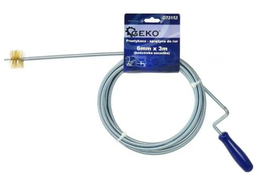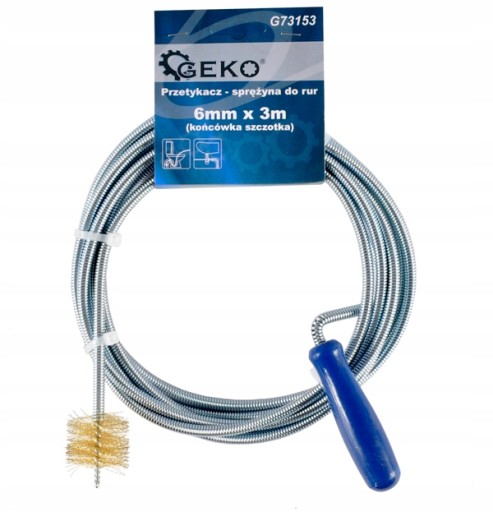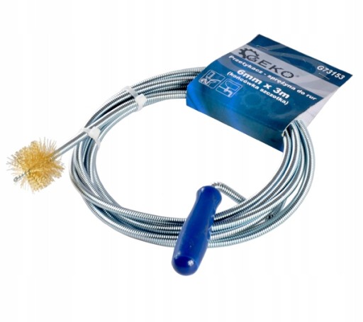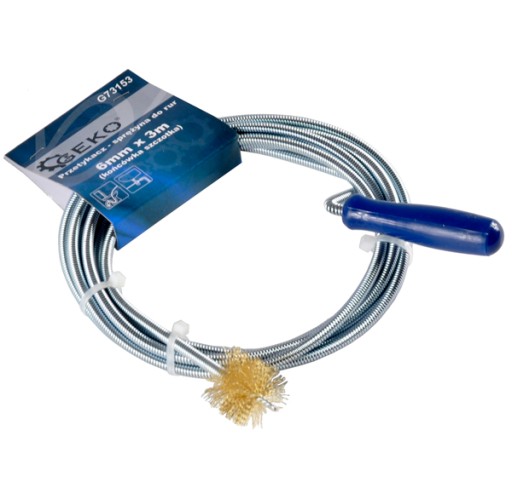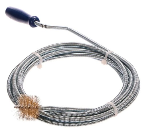 Spirala kanalizacyjna / przetykacz ze szczotką do rur 6mm x 3m Spirala kanalizacyjna przeznaczona do udrażniania rur kanalizacyjnych. Wykonana z ocynkowanego drutu sprężynowego o średnicy 6mm i długości 3m. Idealna do usuwana zatorów w kanalizacji wodno-ściekowej. Charakterystyka produktu: ocynkowany drut sprężynowy o średnicy 6 mm spirala o długości 3 m ergonomiczna rękojeść spirala zakończona szczotką