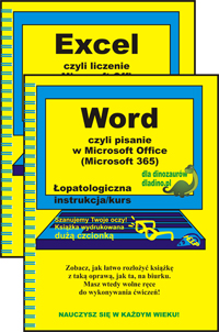 Książki "Word, czyli pisanie w Microsoft Office (Microsoft 365)" oraz „Excel, czyli liczenie w Microsoft Office (Microsoft 365)” to łopatologiczne instrukcje-kursy podstaw obsługi tych podstawowych programów pakietu office. Dla „dinozaurów” – czyli początkujących, seniorów – wszystkich tych, którzy czują, że jeśli chodzi o technologię, to nie nadążają za młodymi. Rozłóż książkę na biurku (umożliwia to spiralkowa oprawa) i mając obie ręce wolne, wykonuj na swoim sprzęcie instrukcje krok po kroku wg strzałek na rysunkach w podręczniku.
